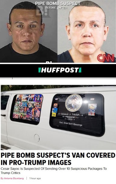 Therefore, it’s always a mere matter of time before the puppetmasters are seen as lying manipulators. Or, at the very least, the luckiest bastards ever to have published photos of a pristine white van, plastered with strangely unfaded pro-Trump stickers, owned by a whiter than average homeless Indian who just sent pipe-bombs to all of the modern-day heroes of the American Democratic Party.