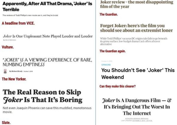 Notice how some of the headlines have reported on Joker as being “boring” or as “numbing emptiness”.  This is because, just like Chappelle’s show, art has mocked life and the leftist gestapo has been revealed as the allegorical emperor standing naked.  They have no defense against truth; and common sense is truth.